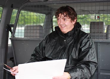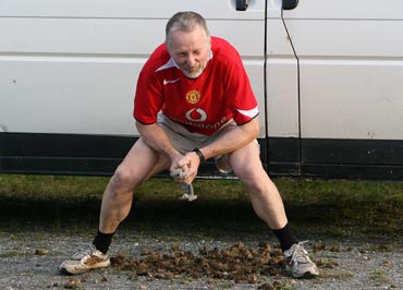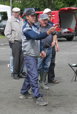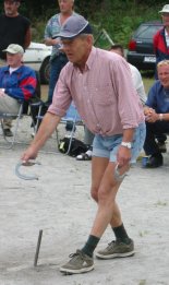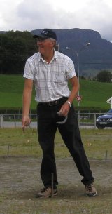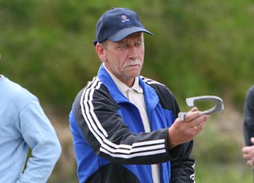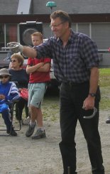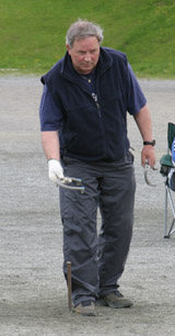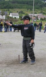 Sputnik under NM i hesteskokasting på Nordfjordeid i 2009. I bakgrunnen sit Vivian