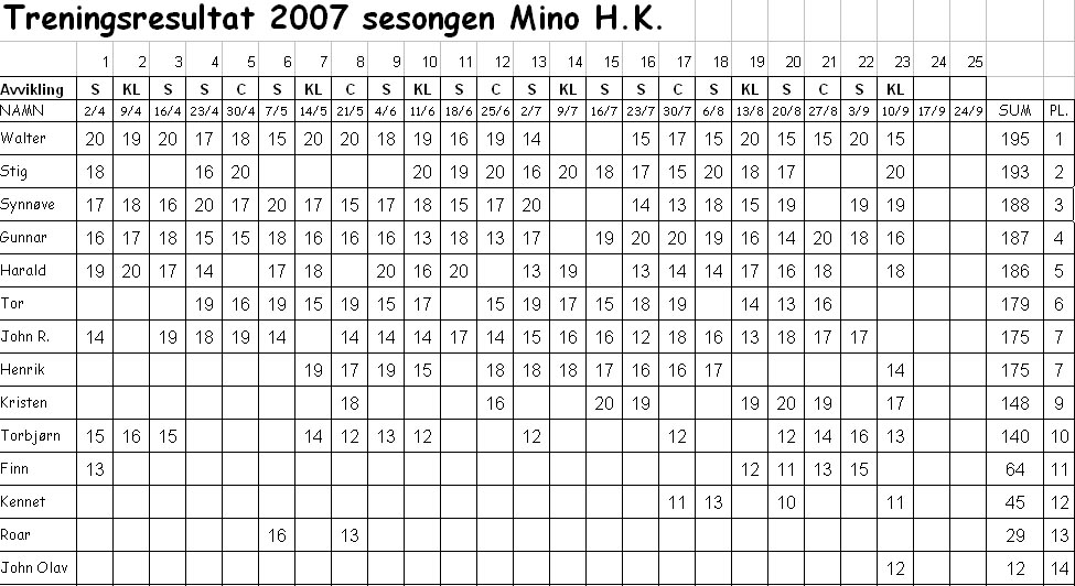 Samanlagt etter 24 av 25 treningar: